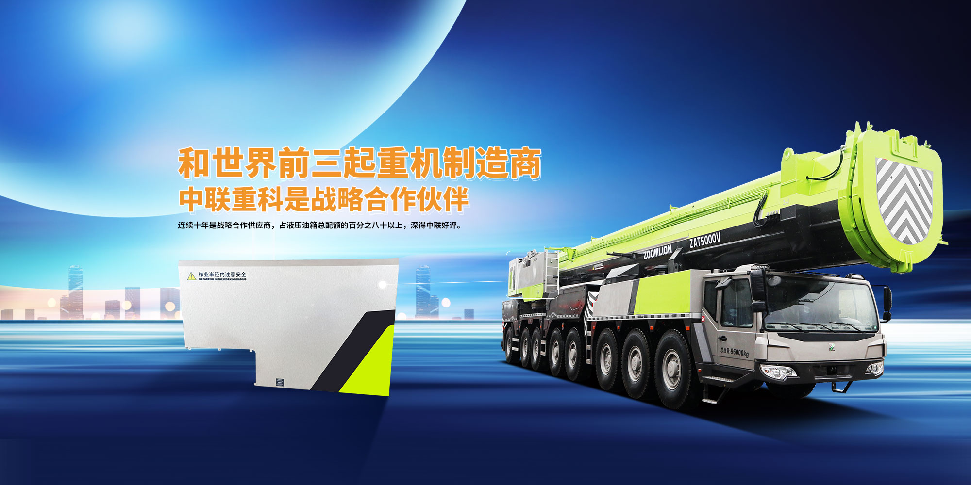 公司連續(xù)三年在長沙中聯重科環(huán)境產業(yè)有限公司是優(yōu)秀供應商,在中聯汽車吊公司也是優(yōu)秀供應商,并且連續(xù)十年是戰(zhàn)略合作供應商,占液壓油箱總配額的百分之八十以上,深得中聯的好評。
